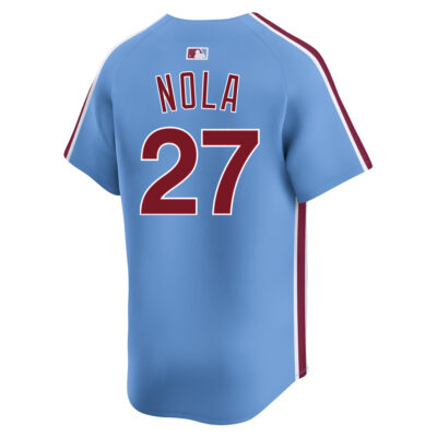 This Aaron Nola Philadelphia Phillies Light Blue Alternate Limited Jersey – All Stitched is an essential piece of gear for any Philadelphia Phillies fan looking to highlight their favorite jersey and player. The Aaron Nola Philadelphia Phillies Light Blue Alternate Limited Jersey and team details provide a kickoff-ready look that elevates your excitement for game day. Made with comfort in mind, this Philadelphia Phillies jersey delivers a standard, lightweight fit and features breathable mesh side panels for added ventilation.