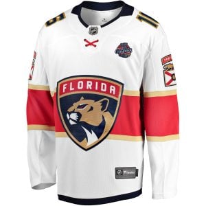 Honor back-to-back greatness with the Aleksander Barkov Florida Panthers Back To Back Championship White Away Premium Jersey. Representing the Florida Panthers and their powerful away-ice performances, this jersey features fully stitched name, number, logo, and championship patch. The clean white color reflects victory and unity, while the fine embroidery captures the elegance of Florida pride. Crafted to commemorate the team’s remarkable consecutive titles, it embodies Barkov’s resilience and leadership through every shift. Whether cheering from the stands or collecting a piece of Panthers history, this jersey stands as a timeless tribute to determination, teamwork, and Sunshine State dominance.