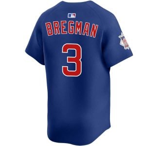 Show bold Chicago Cubs pride with this Royal Blue Alternate Limited Jersey featuring Alex Bregman. As Bregman joins the Cubs, this vibrant blue design reflects the team’s modern edge while honoring Chicago’s deep baseball roots. The Cubs short name is displayed prominently, representing city passion and unity. The player name and number are fully stitched for long-lasting wear, complemented by an embroidered Cubs logo that adds sharp detail. Stitched patches complete the design with layered texture. Built for comfort and standout style, oversized options are available for fans who prefer a looser fit.