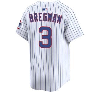 Celebrate a new chapter in Chicago baseball with this Alex Bregman White Home Limited Jersey. Now wearing the colors of the Chicago Cubs, Bregman brings fresh energy to Wrigley Field and strong Chicago pride to the Cubs name. The clean white home design highlights the Cubs short name across the chest, symbolizing tradition and city spirit. Player name and number are fully stitched for durability, while the Cubs logo is carefully embroidered for a premium finish. Detailed patches are stitched to complete the look. Oversized sizes are also available for a relaxed, comfortable fit.