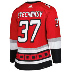 Bold style meets sustainability with the Andrei Svechnikov Carolina Hurricanes Red Alternate Primegreen Jersey – All Stitched. Designed with Primegreen materials, stitched details, embroidered logos, and alternate patchwork, this jersey lets Canes fans honor North Carolina pride responsibly.