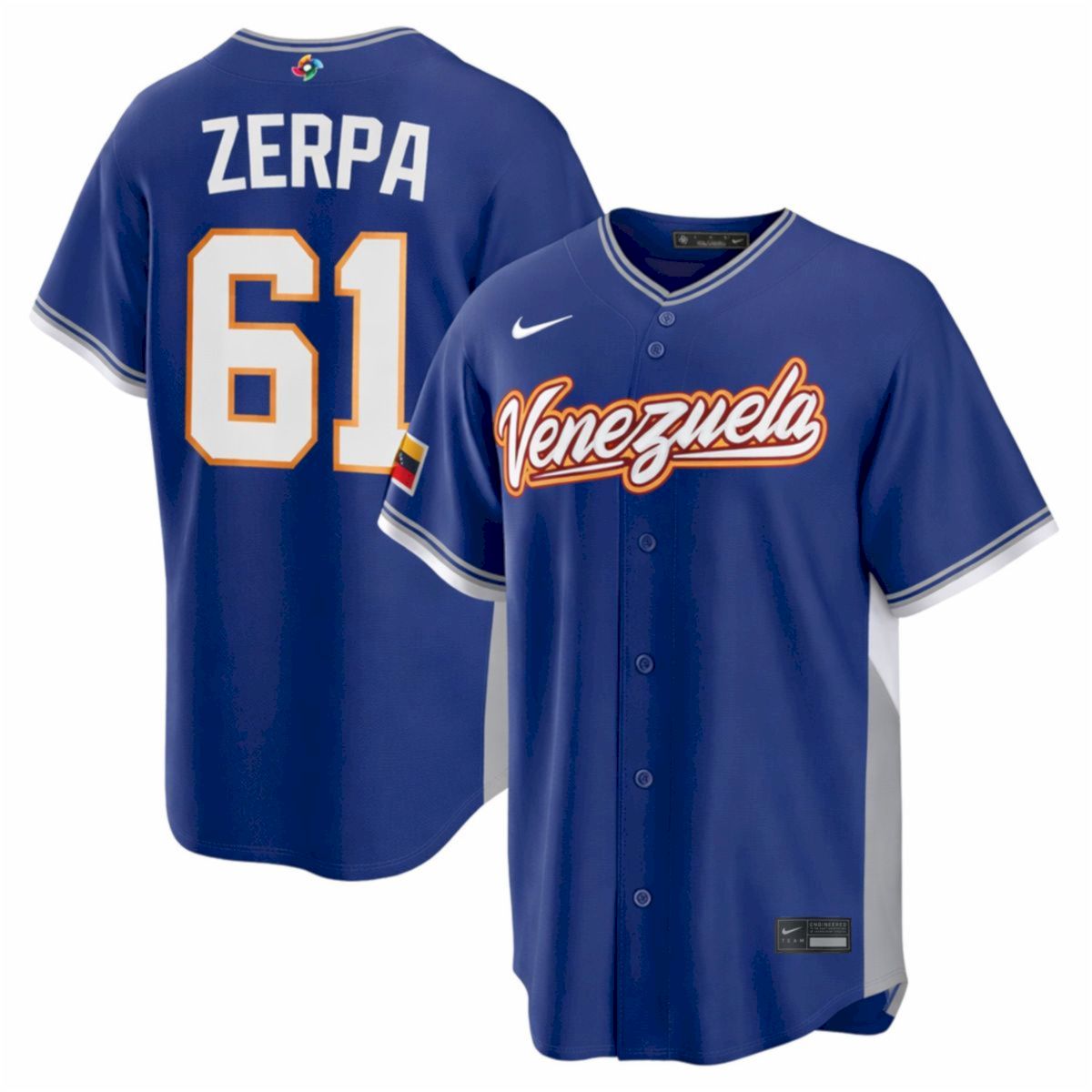 Celebrate international competition with the Ángel Zerpa Venezuela Baseball 2026 World Baseball Classic Royal Road Jersey. This all stitched jersey showcases your pride for Venezuelan baseball as they compete on the world stage. Ángel Zerpa has proven himself as a reliable arm for the national team, bringing heat and precision to every inning during his tournament appearances. Whether you are at the stadium or watching from home, this jersey is perfect to buy for your love of sports and the team. It also makes a great gift for any die-hard fan. Our high-quality gear has been satisfied by thousands of customers who value durability and style. Show your support for Venezuela and wear this royal road jersey with pride.
