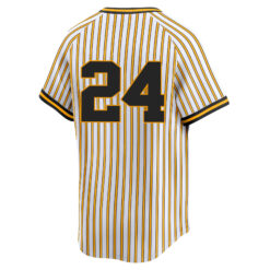 This Barry Bonds Pittsburgh Pirates Pinstripe 1967-86 Throwback Jersey – All Stitched is an essential piece of gear for any Pittsburgh Pirates fan looking to highlight their favorite jersey and player. The Barry Bonds Pittsburgh Pirates Pinstripe 1967-86 Throwback Jersey and team details provide a kickoff-ready look that elevates your excitement for game day. Made with comfort in mind, this Pittsburgh Pirates jersey delivers a standard, lightweight fit and features breathable mesh side panels for added ventilation.