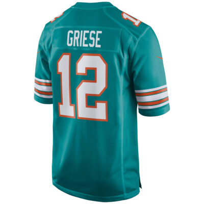 Step into game day with bold style wearing the Bob Griese Miami Dolphins Aqua Alternate Game Jersey – All Stitched. Dolphins fans across Florida know the aqua alternate is a must-have for cheering on their team in a different look. Featuring carefully stitched name and number details along with embroidered team logos and patches, this jersey brings Dolphins energy to every occasion.