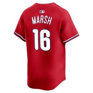 This Brandon Marsh Philadelphia Phillies Red Alternate Limited Jersey – All Stitched is an essential piece of gear for any Philadelphia Phillies fan looking to highlight their favorite jersey and player. The Brandon Marsh Philadelphia Phillies Red Alternate Limited Jersey and team details provide a kickoff-ready look that elevates your excitement for game day. Made with comfort in mind, this Philadelphia Phillies jersey delivers a standard, lightweight fit and features breathable mesh side panels for added ventilation.