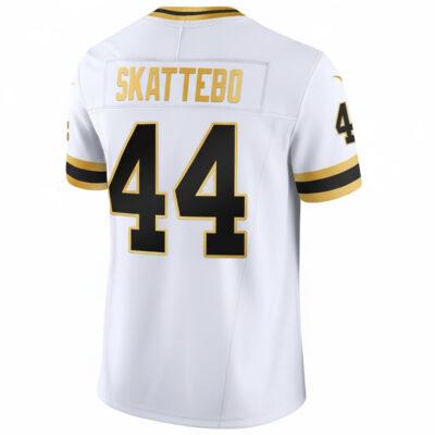 Celebrate Giants greatness with this White Gold 4x Champions 100th Season Jersey featuring Cam Skattebo. The white-and-gold palette honors the New York Giants with an elevated, elegant style while showcasing NYG pride and their championship legacy. All the major details—stitched or embroidered name, number, team logos, and championship patches—offer rich texture and premium durability. Oversized sizes 5XL, 6XL, and 7XL are available.