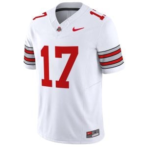 Show your admiration for Ohio State University with the Carnell Tate Ohio State Buckeyes White Heritage Stripe Vapor F.U.S.E Limited Jersey. Blending a classic stripe style with OSU’s modern football identity, this jersey reflects deep Ohio pride and the powerful legacy of the Buckeyes. The clean white look elevates every stitched or embroidered detail — name, number, patch, and logo — giving the jersey a crisp, high-quality finish. Perfect for fans who value both tradition and innovation, this piece captures the long-standing excellence of Ohio State football in a standout limited-edition design.
