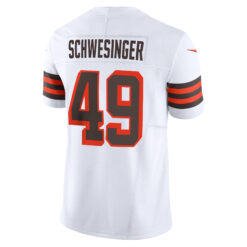 Celebrate the Browns’ long history with the Carson Schwesinger Cleveland Browns White 1946 Throwback Vapor F.U.S.E Limited Jersey – All Stitched. Stitched name and number plus embroidered patches connect the modern game with Cleveland’s roots in Ohio football.