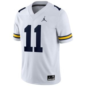 Celebrate Michigan Wolverines pride with this Carter Meadows White Game Jersey, designed to highlight the energy and tradition of the UM football community and the state of Michigan. This clean white jersey features stitched name, number, and embroidered team logo, ensuring every detail stands out with durability and precision. Perfect for game day or everyday fan wear, this piece captures the strength and identity of Wolverines fans everywhere. Men’s oversized sizes 5XL, 6XL, and 7XL are also available to give you the perfect fit while representing your team.