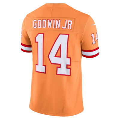 Chris Godwin Jr Tampa Bay Buccaneers Orange Throwback Vapor F.U.S.E Limited Jersey – All Stitched celebrates Buccaneers history with a nod to Florida’s vintage football era. Godwin’s stitched details join embroidered Tampa Bay patches and logos in a throwback style fused with modern performance design.
