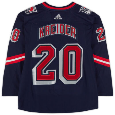 Relive the golden years of Rangers hockey with the Chris Kreider New York Rangers Navy 2021 Reverse Retro Jersey. This nostalgic design pays tribute to New York state pride and the team’s unforgettable heritage. The embroidered Rangers crest and stitched name and number recreate the look that defined generations of NYR fans. Combining vintage inspiration with modern craftsmanship, this jersey honors both the tradition and the evolution of Rangers hockey. A perfect collector’s piece or game-day essential for fans who value history as much as performance.