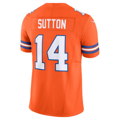 Step up your game with the Courtland Sutton Denver Broncos Orange Mile High Collection 1977 Throwback Vapor F.U.S.E Limited Jersey – All Stitched. Modern design meets vintage style with stitched player details and embroidered patches that connect fans to both today’s excitement and Denver’s football roots.