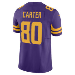 The Cris Carter Minnesota Vikings Purple Alternate Vapor F.U.S.E Limited Jersey – All Stitched combines bold alternate design with Minnesota pride. Featuring fully stitched player details and embroidered logos, this jersey celebrates Carter’s greatness while honoring Vikings tradition.