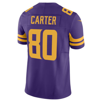 The Cris Carter Minnesota Vikings Purple Alternate Vapor F.U.S.E Limited Jersey – All Stitched combines bold alternate design with Minnesota pride. Featuring fully stitched player details and embroidered logos, this jersey celebrates Carter’s greatness while honoring Vikings tradition.