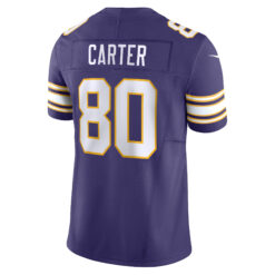 The Cris Carter Minnesota Vikings Purple Classic Vapor F.U.S.E Limited Jersey – All Stitched honors heritage with modern precision. With stitched names, embroidered numbers, and detailed logos, this jersey captures Carter’s legendary role while embodying Minnesota football pride.