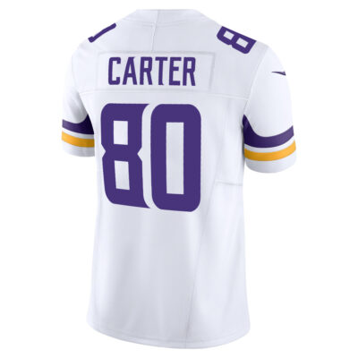 The Cris Carter Minnesota Vikings White Away Vapor F.U.S.E Limited Jersey – All Stitched represents the Vikings with pride wherever they compete. Carter’s stitched details, embroidered logos, and patches symbolize his legendary contributions while highlighting Minnesota state loyalty.