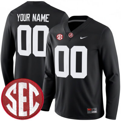 Express Alabama pride in this Custom Crimson Tide Black Therma Long Sleeve Jersey featuring an embroidered SEC patch. With stitched custom name and number and an embroidered BAMA logo, this jersey pairs modern style with state tradition.