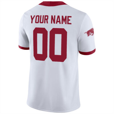 Rep the Razorbacks with this custom Arkansas football jersey in bold white. Featuring all-stitched name and number and team graphics, it delivers a personalized look built for game day. Designed with a lightweight fit and breathable mesh panels, it’s perfect for any Arkansas fan looking to stand out.