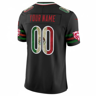 Bring powerful Chicago Bears energy with this Mexico Black Vapor F.U.S.E Limited Jersey, designed for fans who love blending bold aesthetics with true CHI pride. The deep black base enhances the Mexico-themed accents, making the jersey visually striking and meaningful. Custom elements such as your name, number, patches, and the Bears logo are fully stitched or embroidered, delivering durability with a premium feel. Whether you’re shouting for the Bears from Chicago or repping CHI spirit from afar, this jersey adds a unique cultural touch to any fan’s collection.
