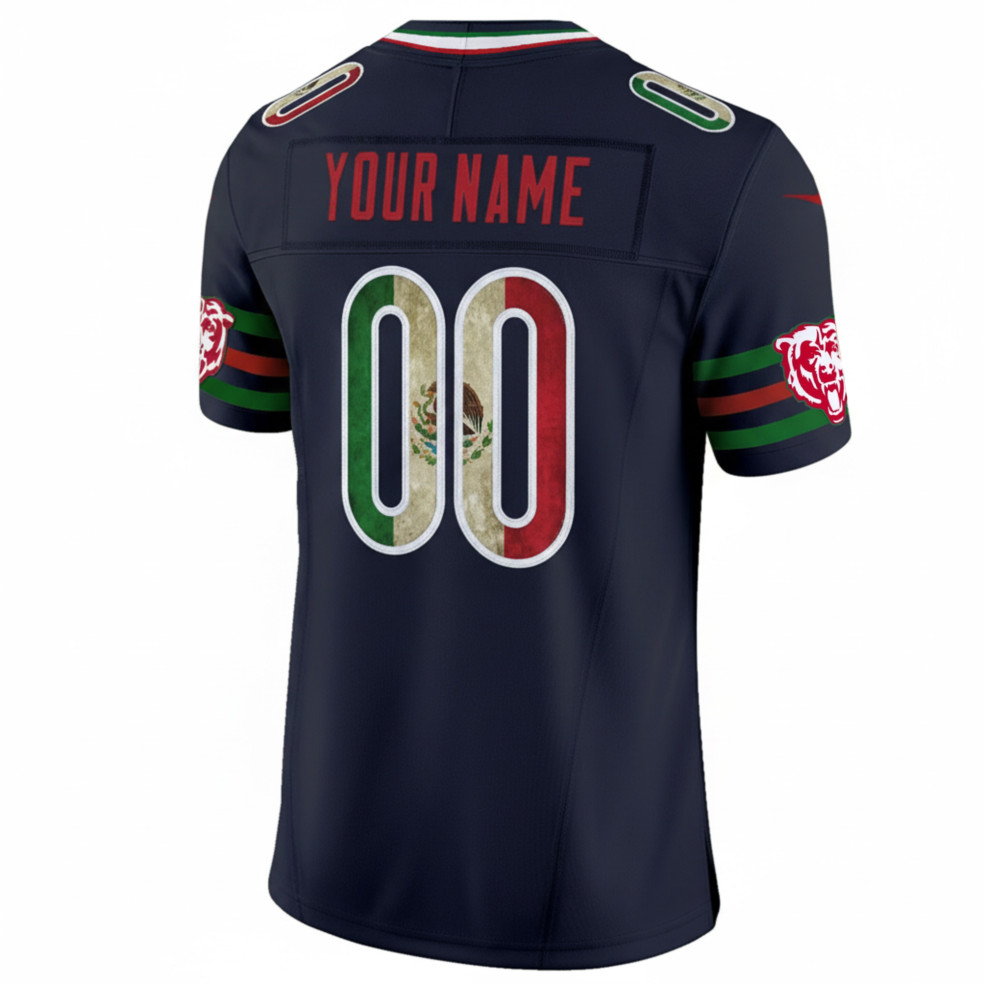 Celebrate your pride in the Chicago Bears with this Mexico Navy Vapor F.U.S.E Limited Jersey, crafted for fans who love representing the iconic Bears and their CHI spirit. Designed to blend state pride with team heritage, this jersey delivers a bold Mexico-inspired look that stands out in any crowd. Every detail—including your custom name, number, patches, and team logo—is fully stitched or embroidered for a premium finish. Whether you’re cheering on the Bears or showing love for the team’s storied Chicago roots, this jersey brings comfort, durability, and standout style to your collection.