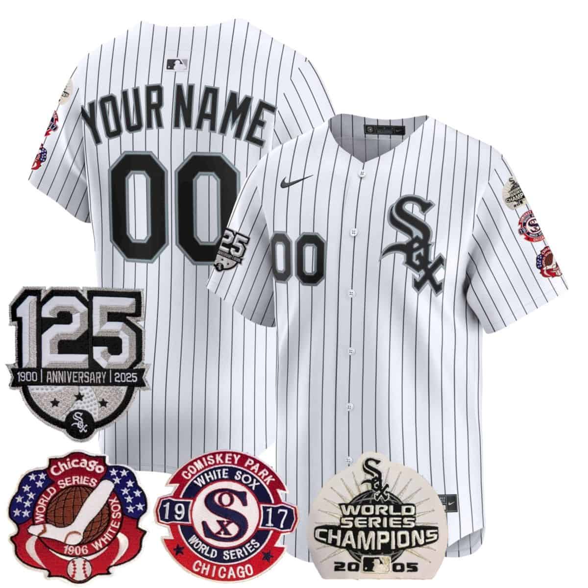 Custom Chicago White Sox 3x Champions 125th Anniversary White Limited Jersey – All Stitched