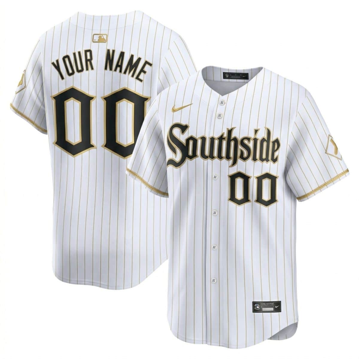 Elevate your game day attire with this Custom Chicago White Sox White Gold South Side Limited Jersey. This custom apparel captures the hardworking spirit of Chicago’s South Side with a luxurious white and gold color scheme. Every detail is all stitched for a high-quality finish that stands the test of time, whether you are cheering from the stands or the streets. The premium design ensures you represent your favorite squad with unparalleled style and comfort.