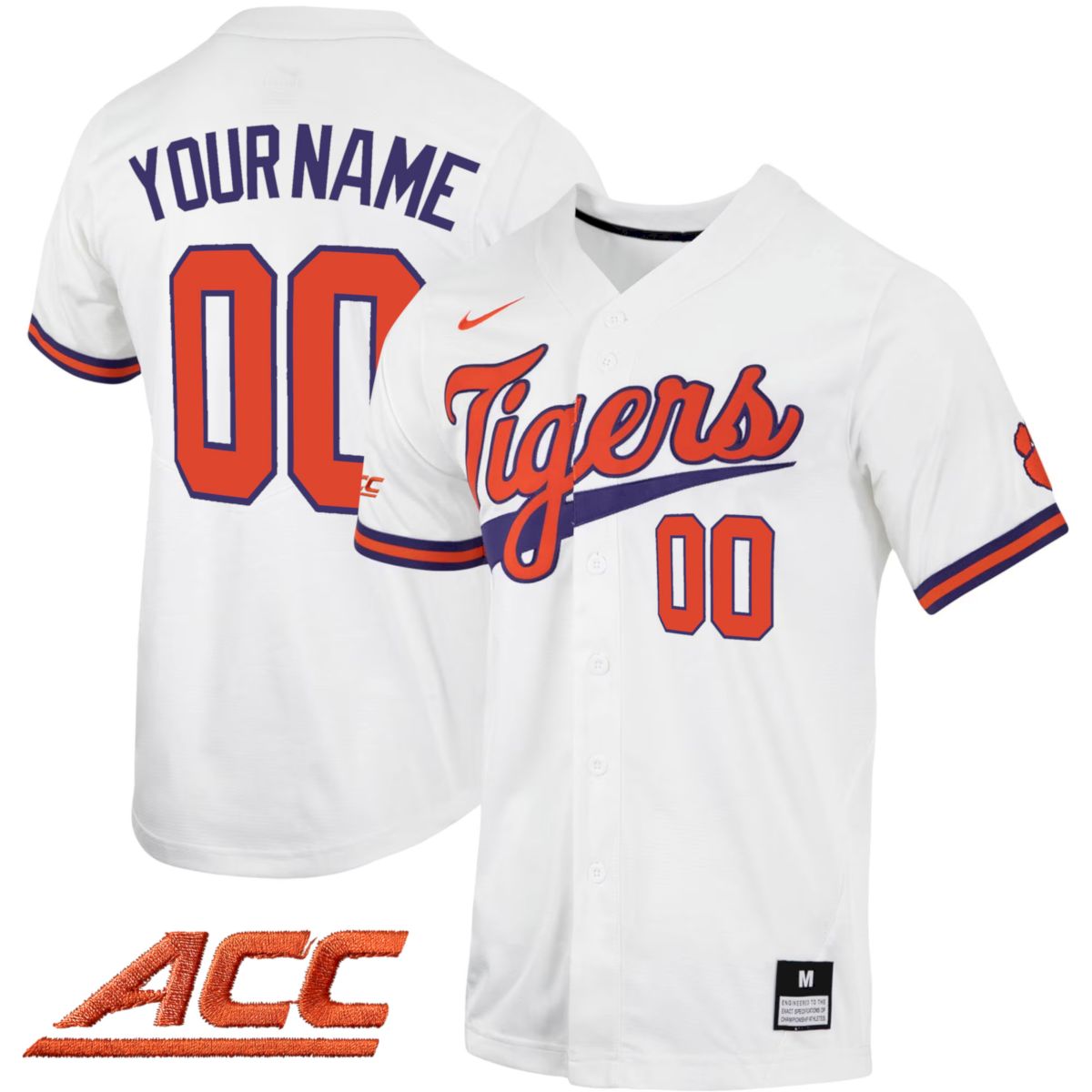 This white away design with ACC patch showcases Clemson University’s road strength within the ACC. The Tigers short name symbolizes statewide pride in South Carolina, complemented by the conference emblem. Designed for durability and comfort, satisfied by thousands of customers.
