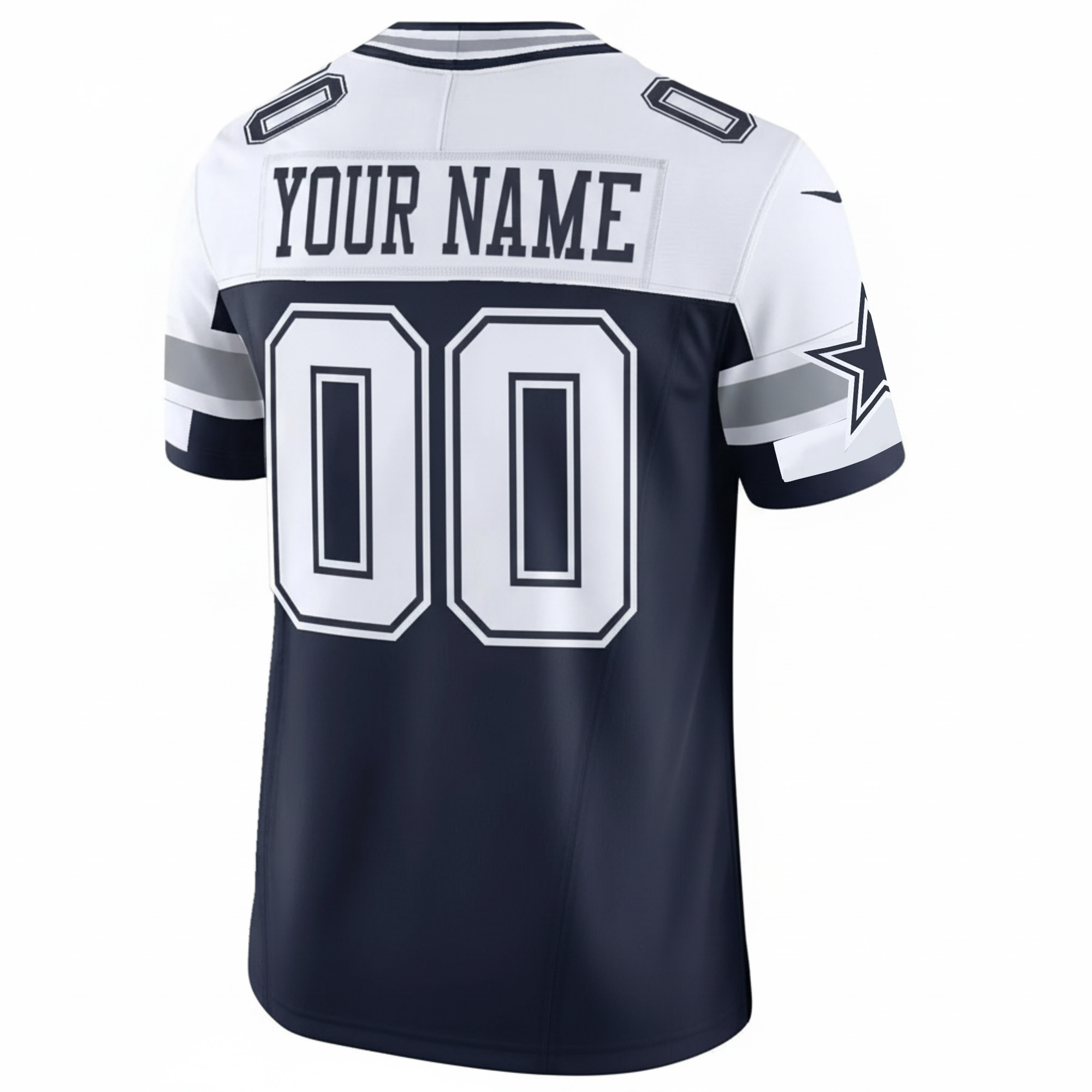 Take your Cowboys pride to the next level with this Custom Dallas Cowboys Dallas City Patch Navy Alternate Limited Jersey. This jersey features a sleek alternate navy design and a bold Dallas city patch, giving it a unique twist. The name, number, patch, and logo are all stitched or embroidered for a premium look. Available in oversized sizes (5XL, 6XL, 7XL), this jersey ensures comfort and style for all Cowboys fans. Perfect for showing your loyalty to the team and the city of Dallas!