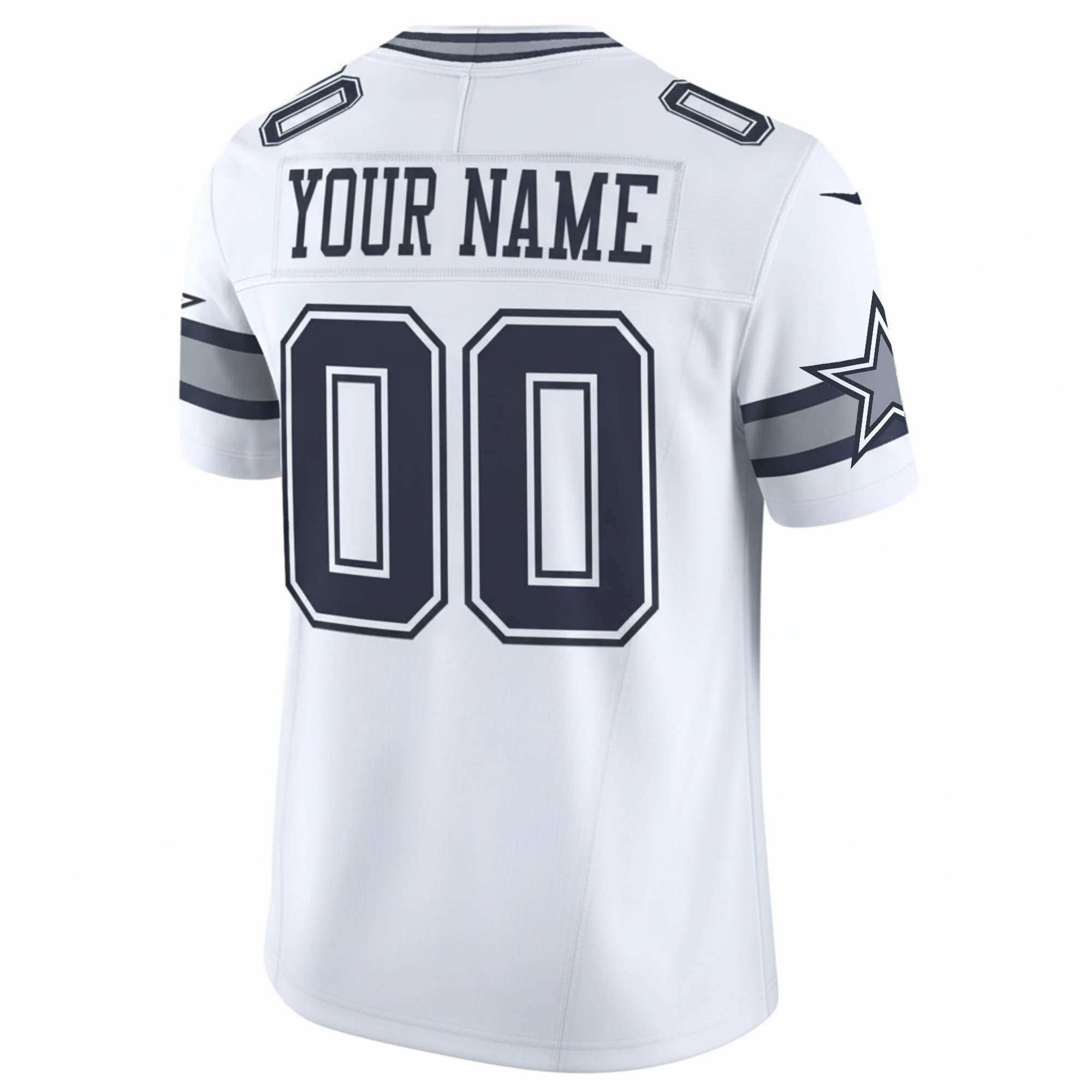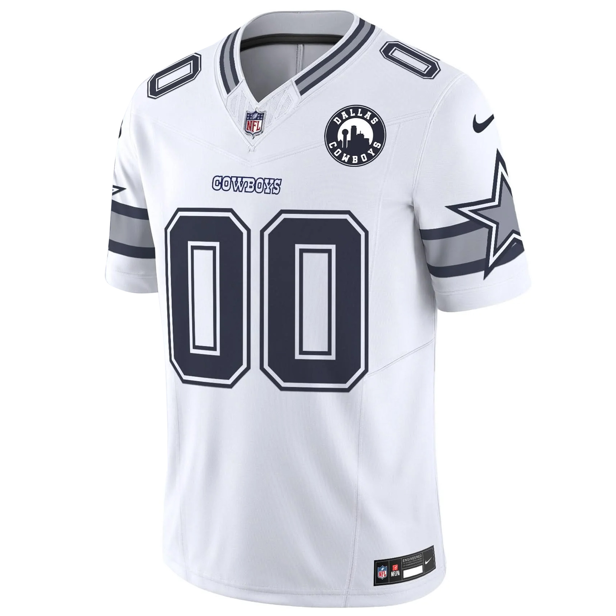 Celebrate your love for the Dallas Cowboys with this Custom Dallas Cowboys City Patch White Limited Jersey. The clean white design features a bold Dallas city patch, allowing you to represent the Cowboys in style. The name, number, patch, and team logo are all stitched or embroidered to provide durability and a premium look. Available in oversized sizes (5XL, 6XL, 7XL), this jersey ensures that every Cowboys fan can proudly showcase their team spirit. Perfect for any occasion, this jersey is a must-have for Dallas enthusiasts.
