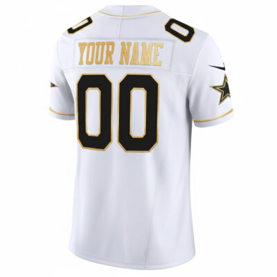 Celebrate your love for the Dallas Cowboys with this Custom Est 1960 “We Dem Boyz” Patch White Gold Limited Jersey. The clean white base with bold gold accents showcases your team spirit in style. With fully stitched or embroidered name, number, patches, and logo, this jersey is crafted to last. Perfect for any occasion, this jersey offers comfort, durability, and style. Oversized sizes (5XL, 6XL, 7XL) are available to ensure every Cowboys fan can rock their team pride.
