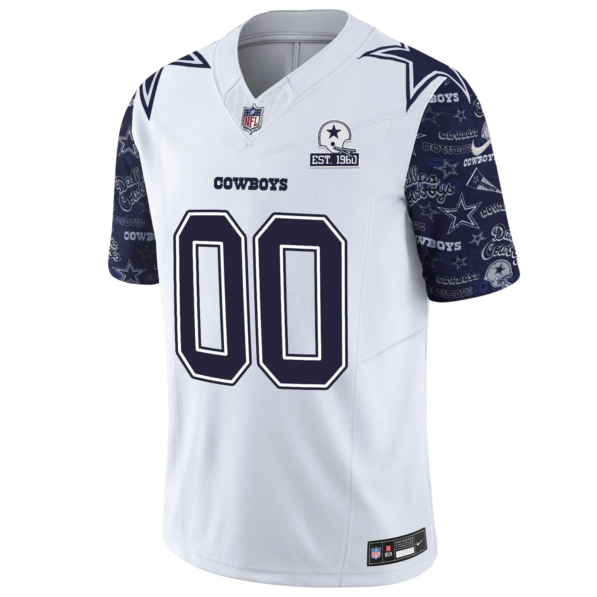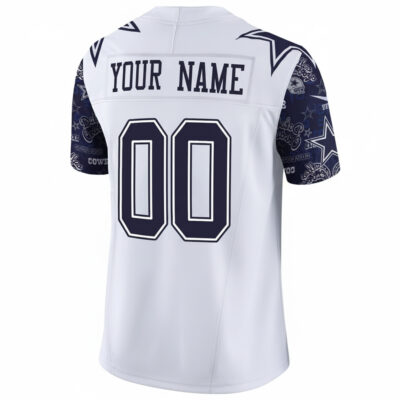 Showcase your Dallas Cowboys pride with the Custom Pattern Navy Sleeve Limited Jersey. This stylish piece features the team name, number, and logo expertly stitched or embroidered, highlighting your love for the Cowboys in classic navy with a unique sleeve pattern. The state pride element is woven into the design, making it a perfect tribute to the team’s rich history. Available in oversized sizes, this jersey offers a relaxed and comfortable fit for fans who want to rep their team with style.