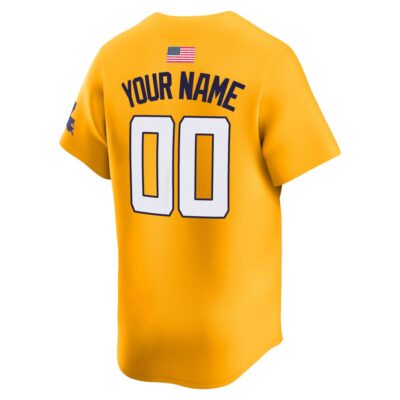 Showcase your unwavering loyalty to Louisiana State University with the Custom LSU Tigers Baseball Gold Away Limited Jersey – All Stitched. Designed with striking gold away colors for the most passionate supporters, this all-stitched baseball jersey is a fantastic way to display your LSU state pride. Whether you customize it with your favorite player’s details to honor their performance on the diamond or choose your own name, this piece represents the ultimate devotion to the LSU Tigers. Boasting premium stitching, it is built to last through every thrilling inning and post-game celebration. Satisfied by thousands of customers, this comfortable apparel easily serves as memorable gifts for fan collections or perfect anniversary apparel for dedicated alumni. Embrace the bold aesthetic and rich traditions of Baton Rouge baseball with this incredible limited edition jersey.