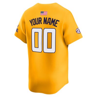 Custom LSU Tigers Baseball Gold Away Limited Jersey w/ SEC Patch – All Stitched