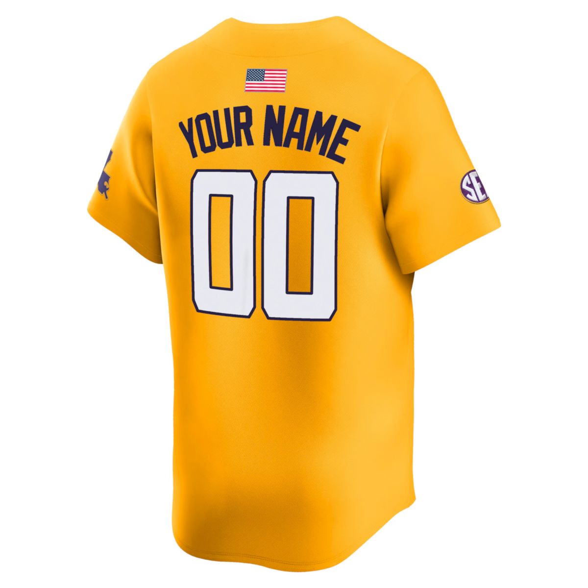 Elevate your game day attire with the Custom LSU Tigers Baseball Gold Away Limited Jersey w/ SEC Patch – All Stitched. As the LSU Tigers proudly compete in the fiercely competitive Southeastern Conference, this bold gold jersey features the prestigious SEC patch to celebrate their rich conference heritage. Showcasing your LSU state pride has never looked better, thanks to the exquisite all-stitched craftsmanship highlighting Louisiana State University. Customize this piece with your most cherished player’s number to show profound fan love, creating a personalized connection to the team’s ongoing legacy. Satisfied by thousands of customers, this stylish garment makes wonderful gifts for fan appreciation or distinctive anniversary apparel to mark special milestones. Wear it proudly and let everyone know that your dedication to the Tigers and their SEC dominance remains completely unmatched.