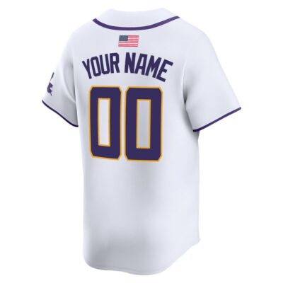 Showcase your unwavering loyalty to Louisiana State University with the Custom LSU Tigers Baseball White Home Alternate Limited Jersey – All Stitched. Designed with a crisp white alternate look for the most passionate supporters, this all-stitched baseball jersey is a fantastic way to display your LSU state pride. Whether you customize it with your favorite player’s details to honor their performance on the diamond or choose your own name, this piece represents the ultimate devotion to the LSU Tigers. Boasting premium stitching, it is built to last through every thrilling inning and post-game celebration. Satisfied by thousands of customers, this comfortable apparel easily serves as memorable gifts for fan collections or perfect anniversary apparel for dedicated alumni. Embrace the clean aesthetics and rich traditions of Baton Rouge baseball with this incredible limited edition jersey.