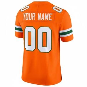This Orange Limited Jersey proudly emphasizes Miami Hurricanes identity with an added Florida state patch. Featuring the Hurricanes team name and Canes short name, the design reinforces strong local pride. Custom stitched name and number are complemented by embroidered logos, Cotton Bowl patches, and a Florida-themed patch for extra detail. The vibrant orange color delivers high visual impact, while the comfortable fit makes it suitable for all-day wear. Oversized options are available.