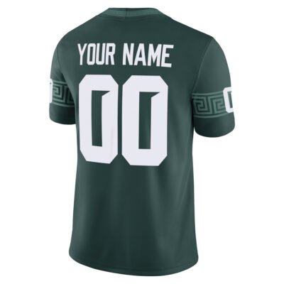 Show your Spartan pride with this Custom Michigan State Spartans Football Jersey in classic green. Featuring all-stitched name and number, this game jersey offers a personalized look with official team details. Built for comfort, it delivers a lightweight fit and breathable mesh panels—perfect for any Michigan State fan on game day.
