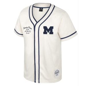 This Colosseum white Hunter Seeker design reflects the adventurous and competitive spirit surrounding the University of Michigan baseball program. UM’s Wolverines short name represents determination and strong Michigan pride.