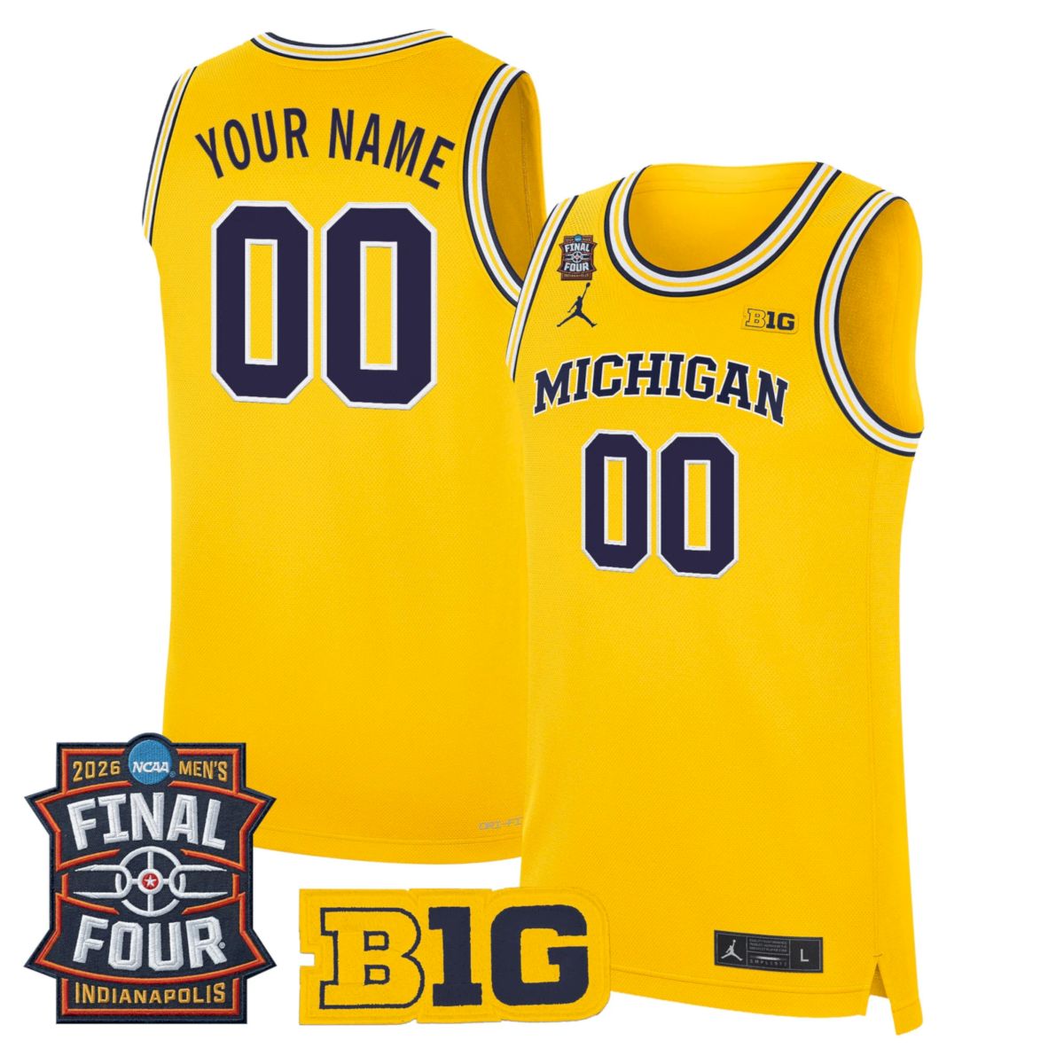 Custom Michigan Wolverines Basketball 2026 Final Four Maize Limited Jersey - All Stitched