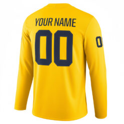 Elevate your Wolverines spirit with this Custom Michigan Wolverines Football Alternate Maize Therma Long Sleeve Jersey. Featuring a fully stitched custom name and number and the classic embroidered Michigan logo, this alternate design captures the energy of UM sports. The maize tone reflects state pride and the unmistakable Michigan heritage. With soft Therma construction for cooler days, this jersey is the perfect personalized choice for fans who want their support to shine.