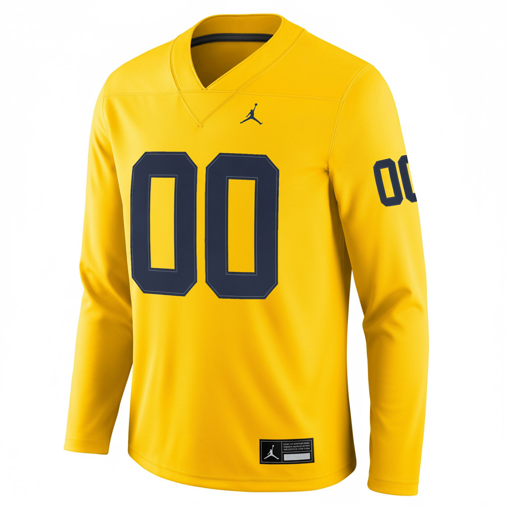 Elevate your Wolverines spirit with this Custom Michigan Wolverines Football Alternate Maize Therma Long Sleeve Jersey. Featuring a fully stitched custom name and number and the classic embroidered Michigan logo, this alternate design captures the energy of UM sports. The maize tone reflects state pride and the unmistakable Michigan heritage. With soft Therma construction for cooler days, this jersey is the perfect personalized choice for fans who want their support to shine.