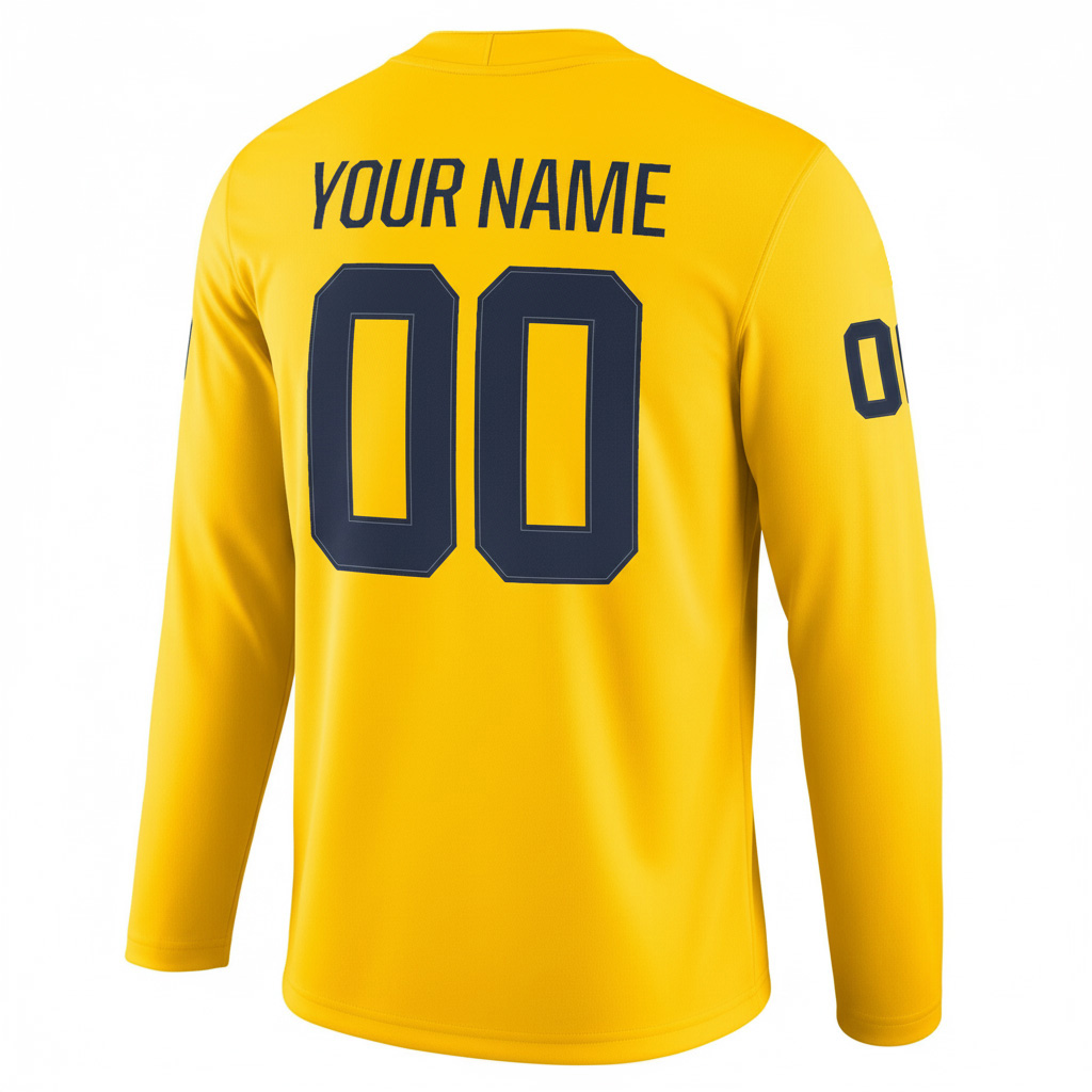 Celebrate Michigan and Big Ten football with this Custom Wolverines Alternate Maize Therma Long Sleeve Jersey. It includes an embroidered B1G patch, stitched custom name and number, and embroidered UM logo. The alternate maize tone honors Wolverine heritage while offering a fresh, fan-focused look.