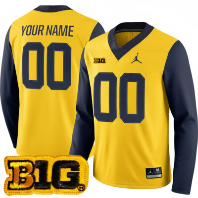 Custom Michigan Wolverines Football Maize Inverted Therma Long Sleeve Jersey w/ B1G Patch – All Stitched