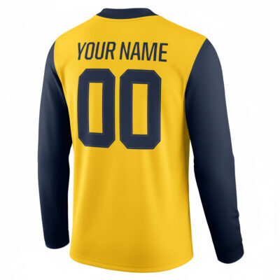 Show off Michigan spirit in this Custom Wolverines Maize Inverted Therma Long Sleeve Jersey featuring an embroidered B1G patch. The stitched custom name and number and embroidered Michigan logo stand out against the unique inverted maize design, celebrating UM pride and the legacy of Michigan football.