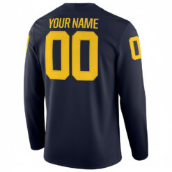 Show Big Ten pride with this Custom Michigan Wolverines Football Navy Therma Long Sleeve Jersey featuring an embroidered B1G patch. Your stitched custom name and number pair with the embroidered Michigan logo for a powerful UM statement. The navy color represents the strength of Michigan athletics and state pride, while Therma material keeps you warm through every Michigan season.