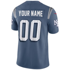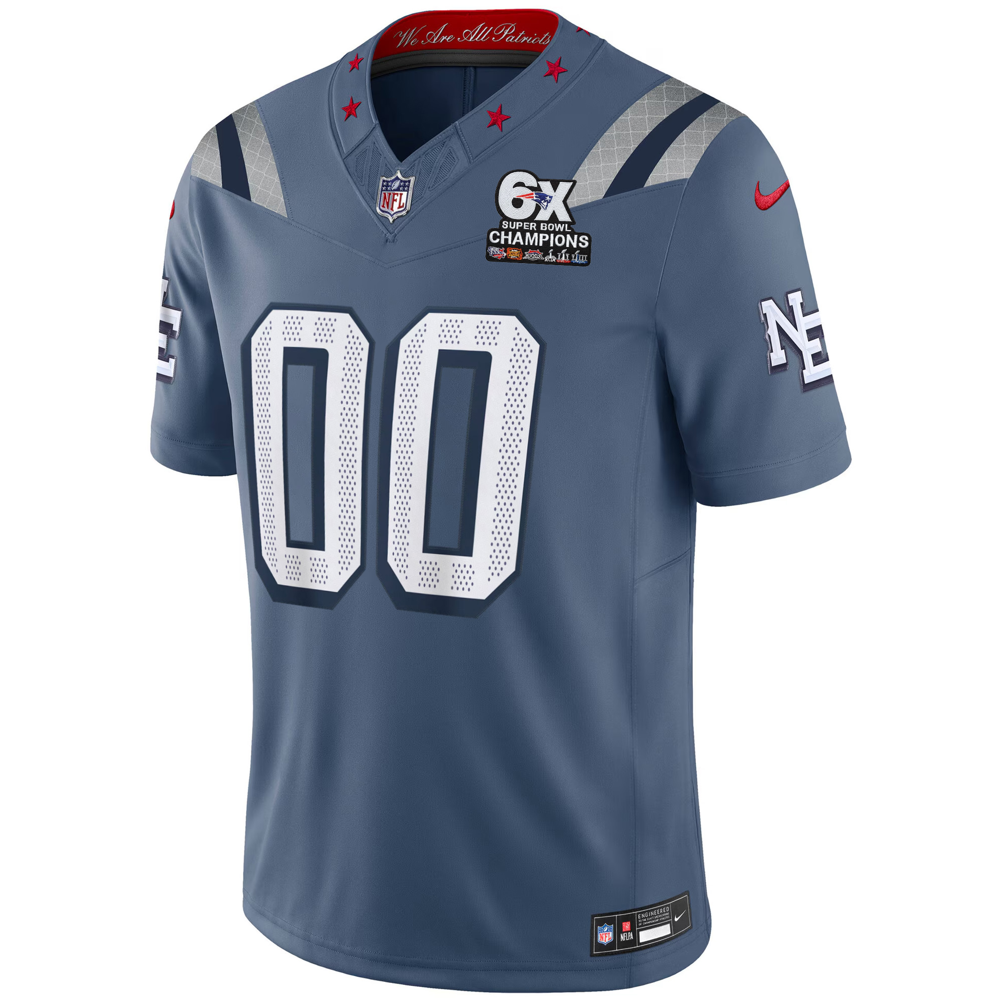 Stand out with the Custom New England Patriots 6x Champions Storm Blue Vapor F.U.S.E Limited Jersey. Featuring a unique storm blue colorway, this jersey reflects modern Patriots energy while honoring New England state pride. The team name, Pats short name elements, number, logo, and 6x Champions patch are all stitched or embroidered for crisp detail. Designed for fans who appreciate bold color with deep meaning, this jersey is also offered in oversized sizes for a relaxed, confident fit.