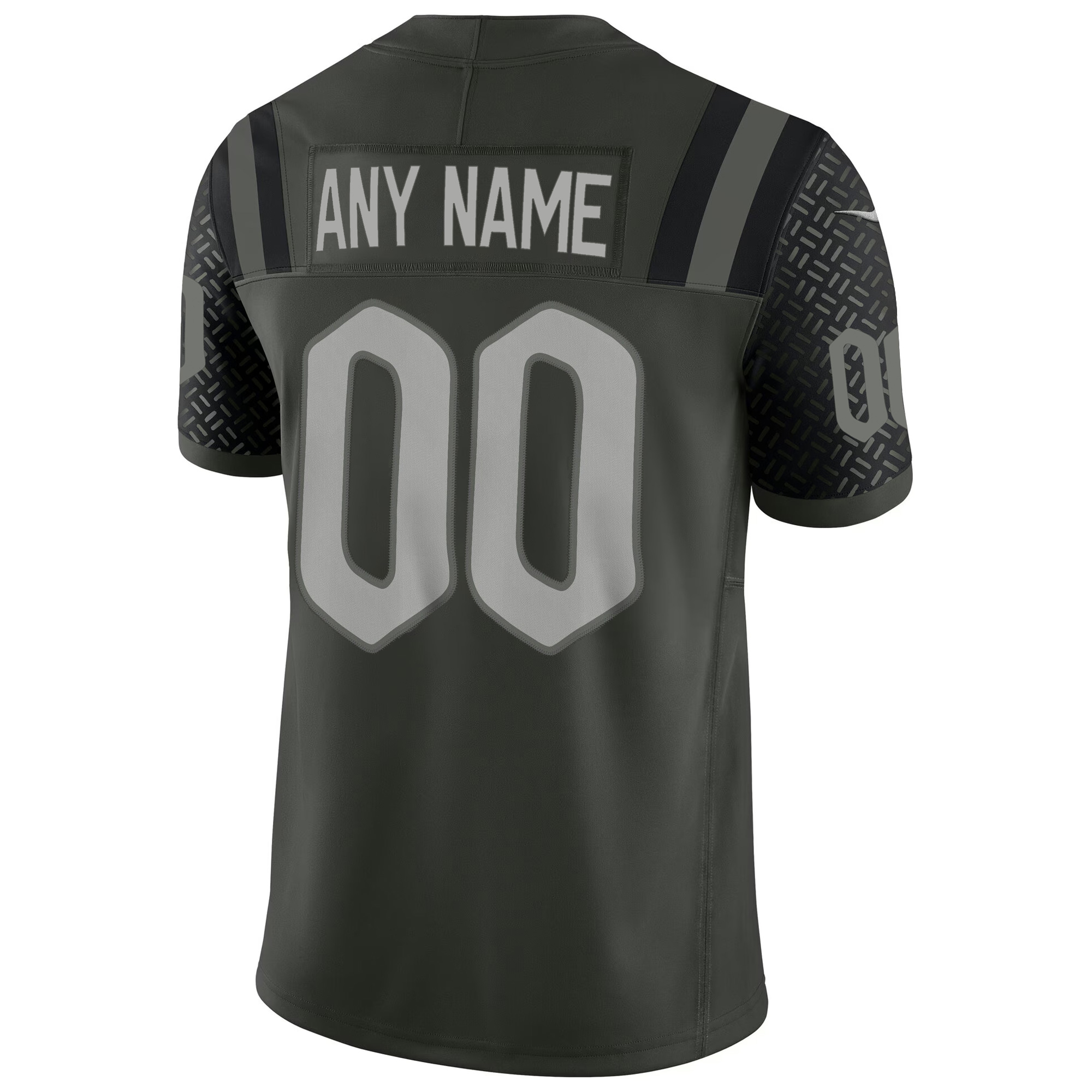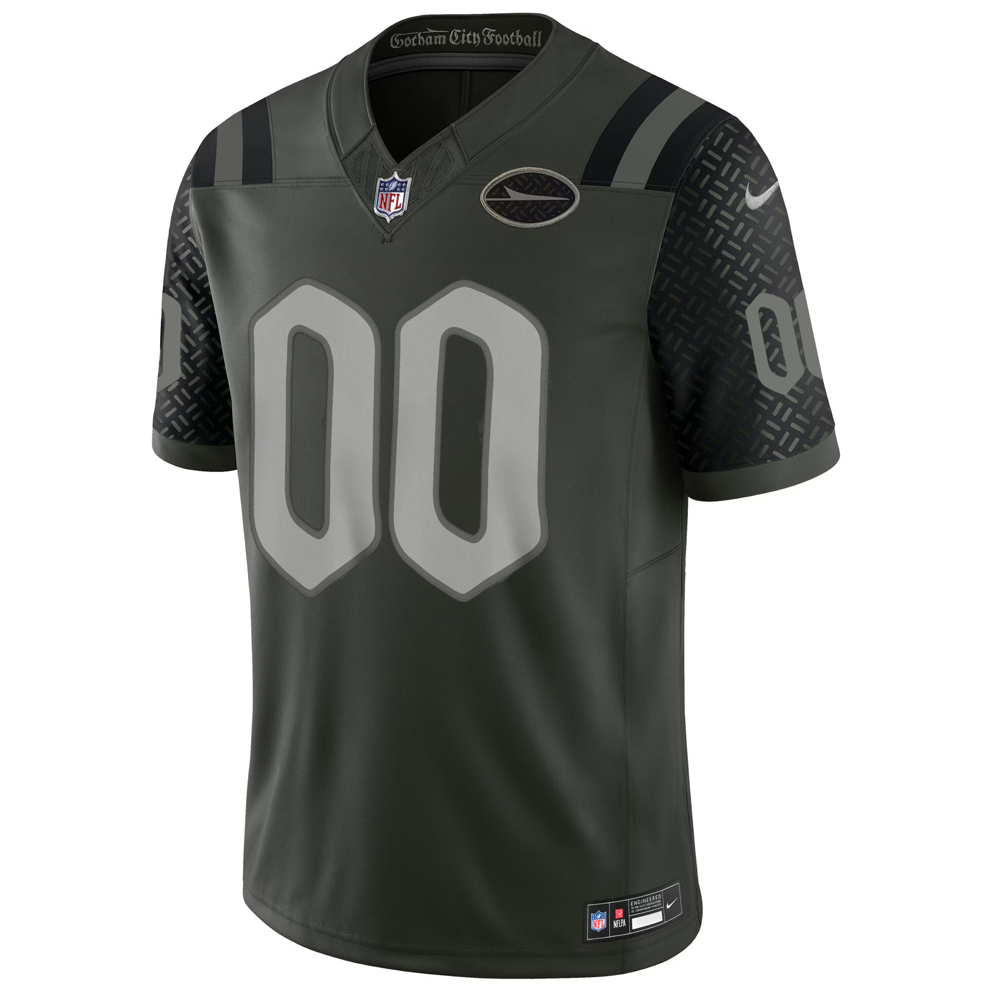 Personalize your passion with the Custom New York Jets Gotham Green 2025 Rivalries Collection Limited Jersey. The 2025 Rivalries Collection brings together fan communities by unveiling special designs during rivalry home games, and this Limited edition offers a performance edge. The Limited version is featuring a “standard fit,” Dri-FIT technology, heat-transferred twill name and numbers, and a chainmaille mesh grill at the collar. Along with modern performance, stitched player details, embroidered logo, and team patch ensure your Jets pride shines in Gotham style.