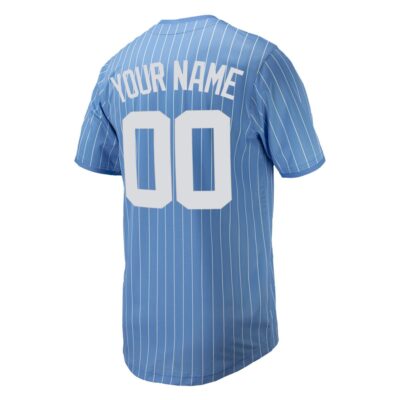This Carolina Blue pinstripe home design honors the classic baseball heritage of the University of North Carolina. UNC’s Tar Heels short name carries generations of North Carolina pride and competitive spirit. The timeless pinstripe pattern paired with stitched detailing creates a balanced, traditional look. Great for game days or meaningful gifts, this fan favorite has been satisfied by thousands of customers.