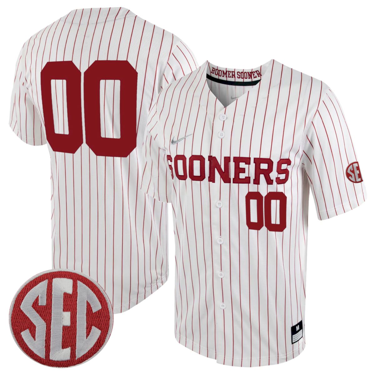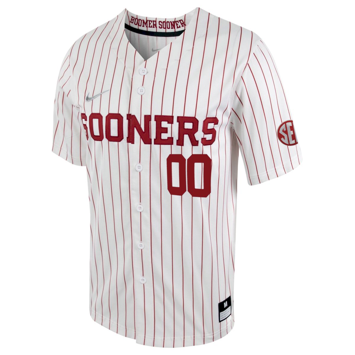 This white pinstripe game-style design captures the traditional ballpark look associated with the University of Oklahoma. OU proudly represents excellence in collegiate sports, and the Sooners short name reflects unwavering Oklahoma pride. The SEC patch celebrates the program joining the Southeastern Conference, marking a historic step toward new challenges and memorable matchups. Fully stitched details create a durable and visually striking design. Fans appreciate its timeless feel and strong connection to Sooners baseball, satisfied by thousands of customers.