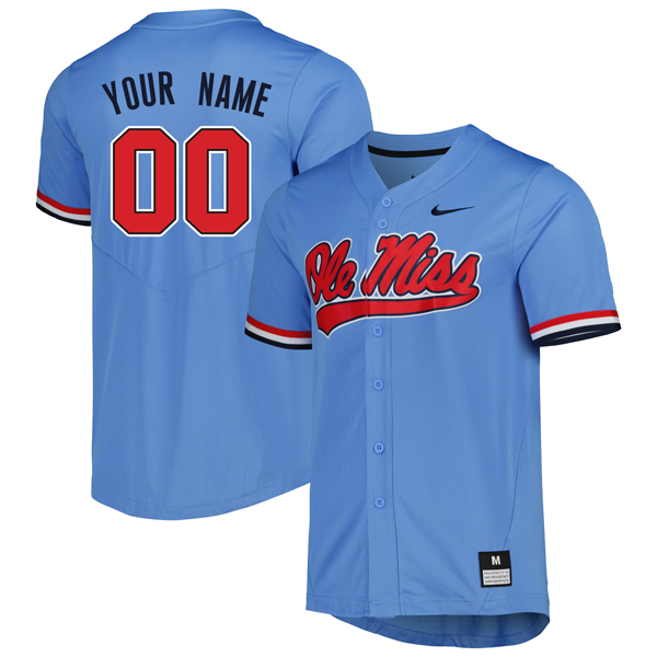 Custom Ole Miss Rebels Baseball Powder Blue Full Button Jersey – All Stitched